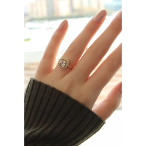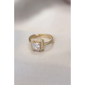 Gold Baget ve Zirkon Taşlı Kare Yüzük