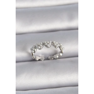 Pirinç Gümüş Renk Ayarlanabilir İncili Kalp Model Kadın Yüzük
