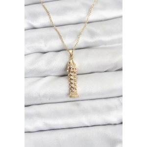 316L Çelik Zincir Gold Renk Kilit Anahtar Model Zirkon Taşlı Kadın Kolye