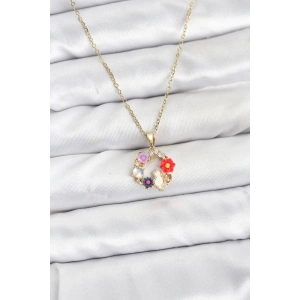 316L Çelik Zincir Gold Renk Çiçekli Kedili Model Kadın Kolye
