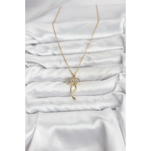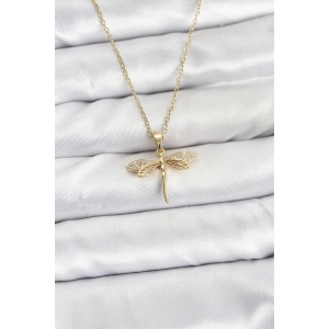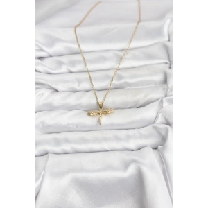316L Çelik Zincir Gold Renk Yusufçuk Model Zirkon Taşlı Kadın Kolye