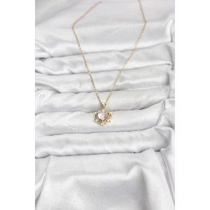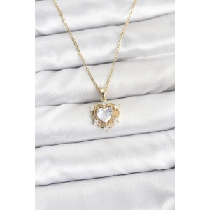 316L Çelik Zincir Gold Renk Kalp Model Zirkon Taşlı Kadın Kolye