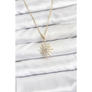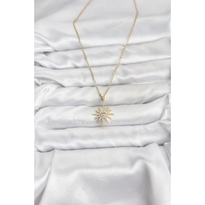 316L Çelik Zincir Gold Renk Kutup Yıldızı Model Zirkon Taşlı Kadın Kolye