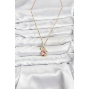 316L Çelik Zincir Gold Renk Pembe Kuğu Model Zirkon Taşlı Kadın Kolye
