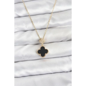 316L Çelik Zincir Gold Renk Yonca Model Zirkon Taşlı Kadın Kolye