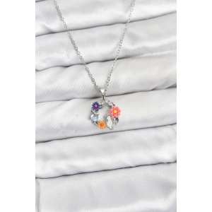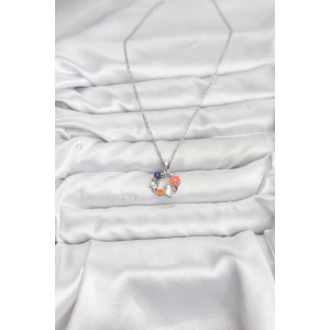 316L Çelik Zincir Gümüş Renk Çiçekli Kedili Model Kadın Kolye