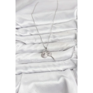 316L Çelik Zincir Gümüş Renk Kilit Anahtar Model Zirkon Taşlı Kadın Kolye