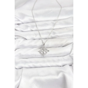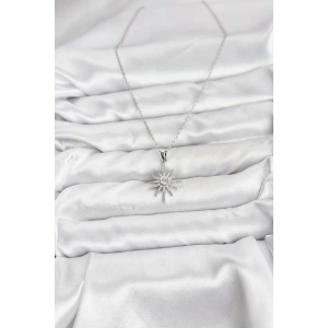 316L Çelik Zincir Gümüş Renk Kutup Yıldızı Model Zirkon Taşlı Kadın Kolye