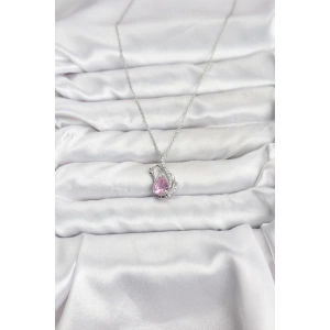316L Çelik Zincir Gümüş Renk Pembe Kuğu Model Zirkon Taşlı Kadın Kolye
