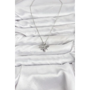 316L Çelik Zincir Gümüş Renk Sinek Model Zirkon Taşlı Kadın Kolye