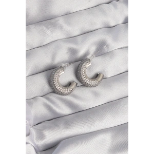 Pirinç Gümüş Renk Zirkon Taşlı Yarım Halka Küpe