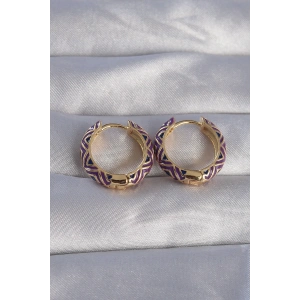 Pirinç Gold Renk Mor Etnik Desenli Halka Küpe