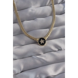 Pirinç Gold Renk Zirkon Taşlı Yıldız Model Siyah Mineli Ezme Zincirli Serenay Kolyesi
