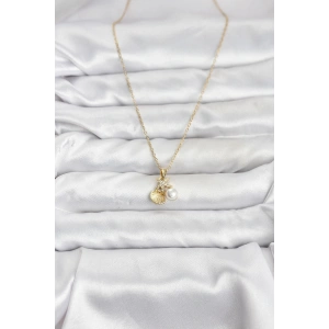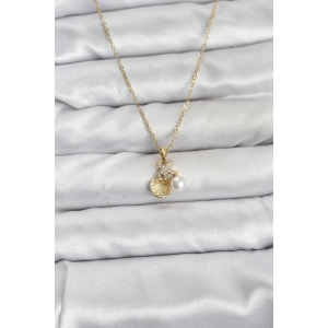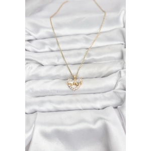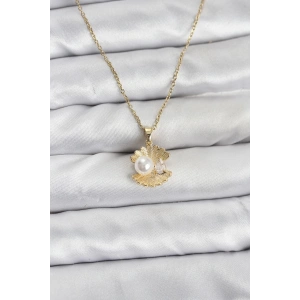 316L Çelik Zincir Gold Renk İstiridye İnci Model Zirkon Taşlı Kadın Kolye