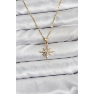 316L Çelik Zincir Gold Renk Kutup Yıldızı Model Zirkon Taşlı Kadın Kolye
