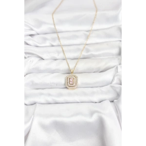 316L Çelik Zincir Gold Renk Plaka Model Zirkon Taşlı Kadın Kolye