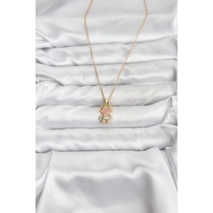 316L Çelik Zincir Gold Renk Teddy Bear Model Zirkon Taşlı Kadın Kolye