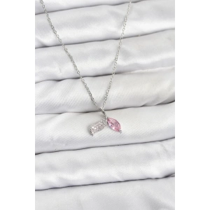 316L Çelik Zincir Gümüş Renk Plaka Model Zirkon Taşlı Kadın Kolye