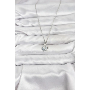 316L Çelik Zincir Gümüş Renk Balık Model Zirkon Taşlı Kadın Kolye
