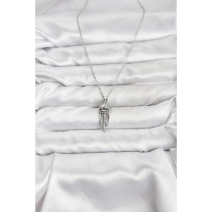 316L Çelik Zincir Gümüş Renk Balık Kuyruğu Model Zirkon Taşlı Kadın Kolye