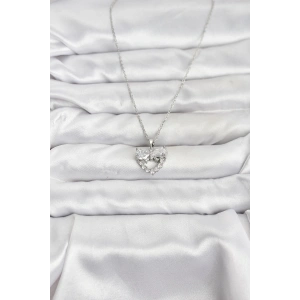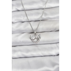 316L Çelik Zincir Gümüş Renk Kalp ve Fiyonk Model Zirkon Taşlı Kadın Kolye