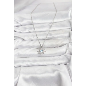 316L Çelik Zincir Gümüş Renk Kutup Yıldızı Model Zirkon Taşlı Kadın Kolye