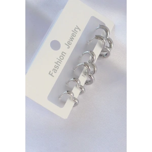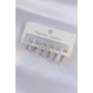 Pirinç Gümüş Renk Minimal Tırtıklı Küpe Seti