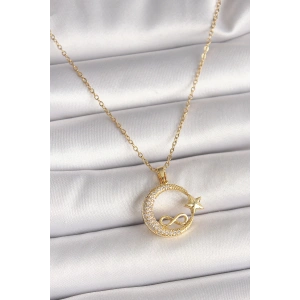 316L Çelik Gold Renk Zincir Zirkon Taşlı Ay Yıldız Model Sonsuzluk Detay Kadın Kolye