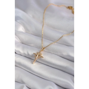 316L Çelik Gold Renk Zirkon Taşlı Kutup Yıldızı Model Kadın Kolye