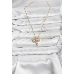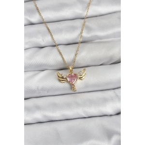316L Çelik Zincir Gold Renk Kanatlı Kalp Model Zirkon Taşlı Kadın Kolye