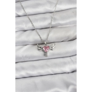 316L Çelik Zincir Gümüş Renk Kanatlı Kalp Model Zirkon Taşlı Kadın Kolye