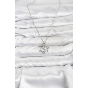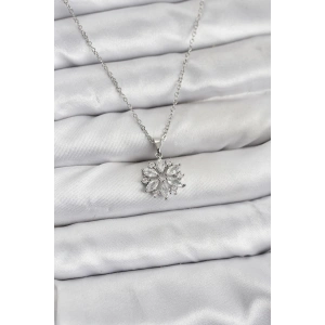 316L Çelik Zincir Gümüş Renk Kar Tanesi Model Zirkon Taşlı Kadın Kolye