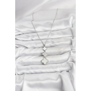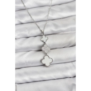 316L Çelik Zincir Gümüş Renk Yonca Detaylı Zirkon Taşlı Kadın Kolye