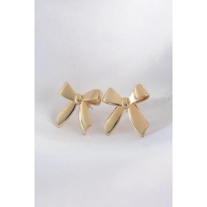 Pirinç Gold Renk Fiyonk Model İnci Taşlı Uzun Küpe