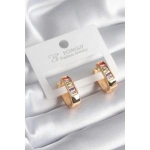 Pirinç Gold Renk Renkli Zirkon Taşlı Kadın Küpe