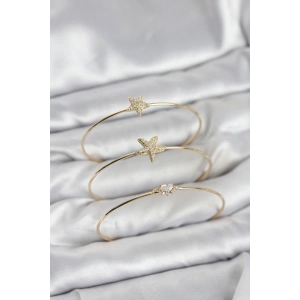 Zirkon Taşlı Kutup Yıldızı Model Gold Renk 3'lü Kadın Bileklik Kombini