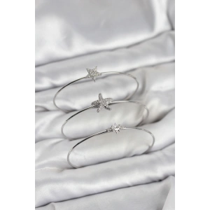 Gümüş Renk Zirkon Taşlı Deniz Yıldızı Model 3'lü Kadın Bileklik Kombini