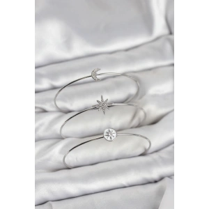 Zirkon Taşlı Kutup Yıldızı Model Gümüş Renk 3'lü Kadın Bileklik Kombini