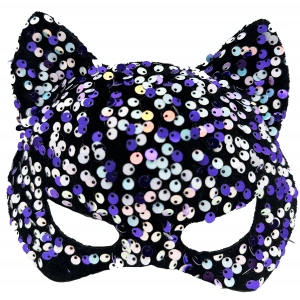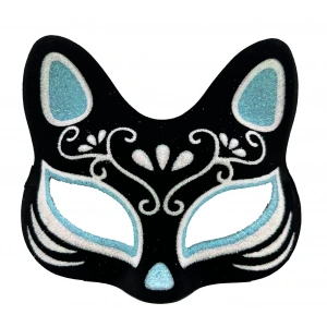 Siyah Renk Süet Kaplama Üzeri Gümüş Mavi Simli Kedi Maskesi 17x14 Cm
