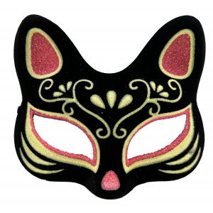 Siyah Renk Süet Kaplama Üzeri Pembe Sarı Simli Kedi Maskesi 17x14 Cm