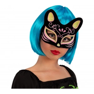 Siyah Renk Süet Kaplama Üzeri Sarı Pembe Simli Kedi Maskesi 17x14 Cm
