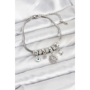 Pirinç Gümüş Renk Güneş Charmlı Kadın Bileklik