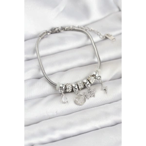 Pirinç Gümüş Renk Kelebek Charmlı Kadın Bileklik