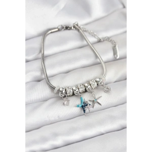 Pirinç Gümüş Renk Yıldız Model Charmlı Kadın Bileklik