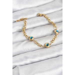 316L Çelik Gold Renkli Nazar Boncuk Model Kadın Bileklik