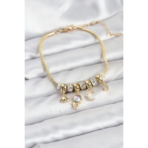 Pirinç Gold Renk Uzay Tema Charmlı Kadın Bileklik
