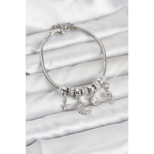 Pirinç Gümüş Renk Ay Charm Model Charmlı Kadın Bileklik