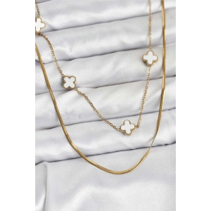 316L Çelik Zincir Gold Renk İtalyan Zincirli Yonca Model Kadın Kolye