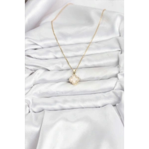 316L Çelik Zincir Gold Renk Sedefli Yonca Kadın Kolye