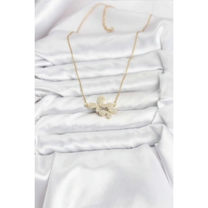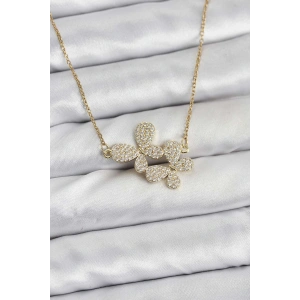316L Çelik Zincir Gold Renk Zirkon Taşlı Kelebek Model Kadın Kolye